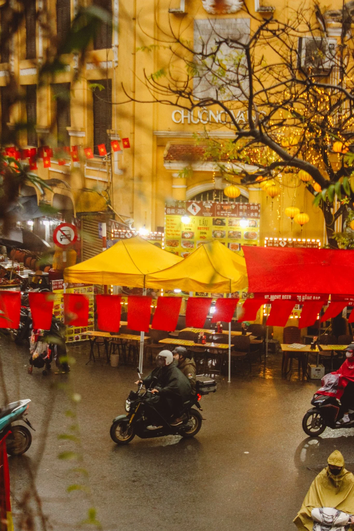 Hanoi does not slow down in the rain, it simply adapts. The tiny colourful plastic stools that line the restaurants don’t move, hidden canopies slide out to cover them instead, local’s still gathering to eat. The traffic does not come to a stop, motorbike riders instead adorn themselves in translucent ponchos as they hum through puddled alleys unfazed. Cafe’s glow behind fogged windows, cups of hot egg coffee in hand. Street vendors huddle under tarp, pots of steaming pho bubbling away, the scent of fresh herbs still lingering in the air. Retreat indoors, the city does not. Vietnam’s chaotic Hanoi continues, come rain or shine.