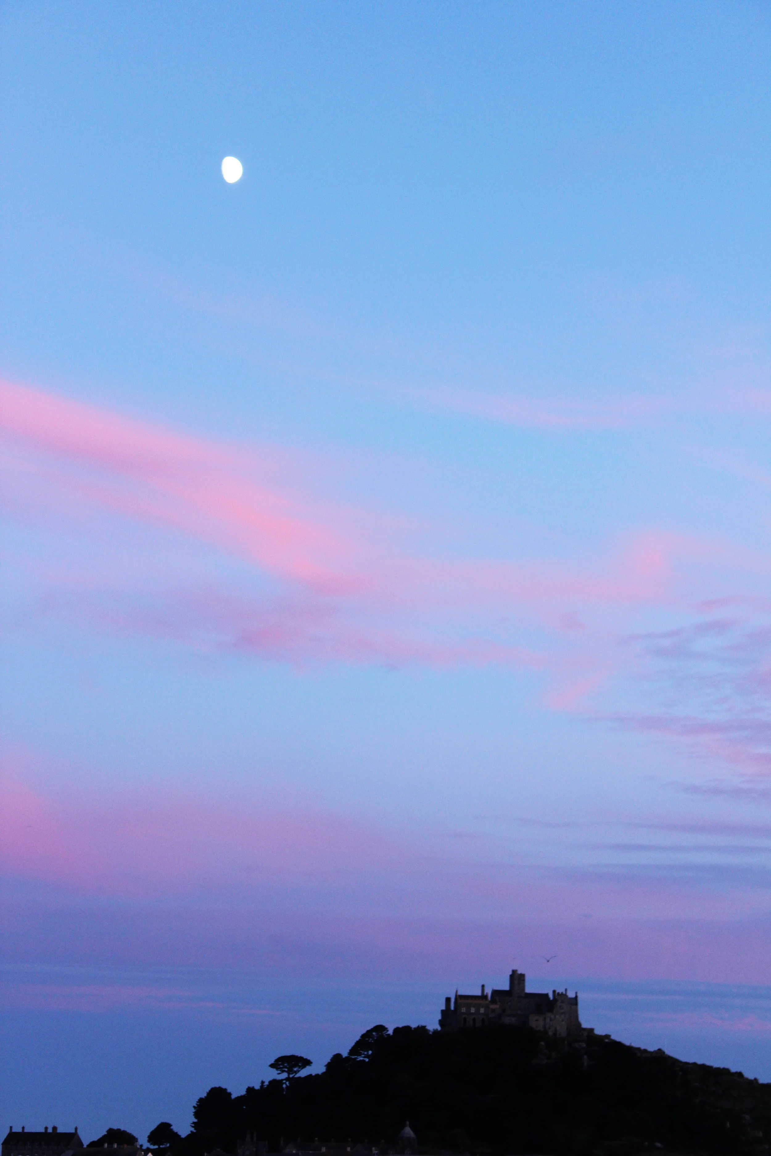 After some quick Pinterest searches, we learned about a place called St Micheal's Mount. It is a tidal island which is only reachable in the evening or very early morning during low tide. It's located in Marazion. Digging out the map, we worked it out to be 40 minutes away, so we chased the sunset there. We explored this historic island during golden hour and it was the perfect way to end a jam-packed day. Back at the van we played 'bat n ball' whilst cooking tortellini. We had hoped to camp up and stay here for the night as the view was great bur this was not to be. At around 9 o’clock we were kicked out of the scenic car park and began our very long search for a place to sleep.